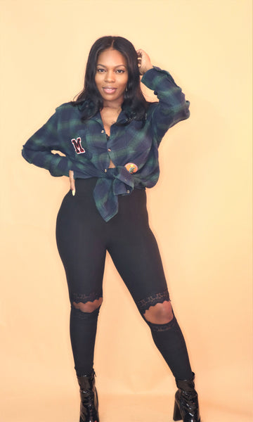 The peekaboo leggings is very cute with a lace cut out knee detail. Fit true to size , model is wearing size small.